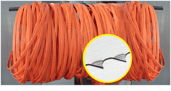 本公司專業生產各類帶鋸條,合金帶鋸條,刀帶,公司擁有雄厚的技術力量,各類的加工設備,現代化的檢測設施及熱處理,焊接等全套生產裝備。